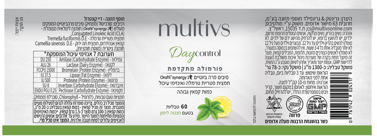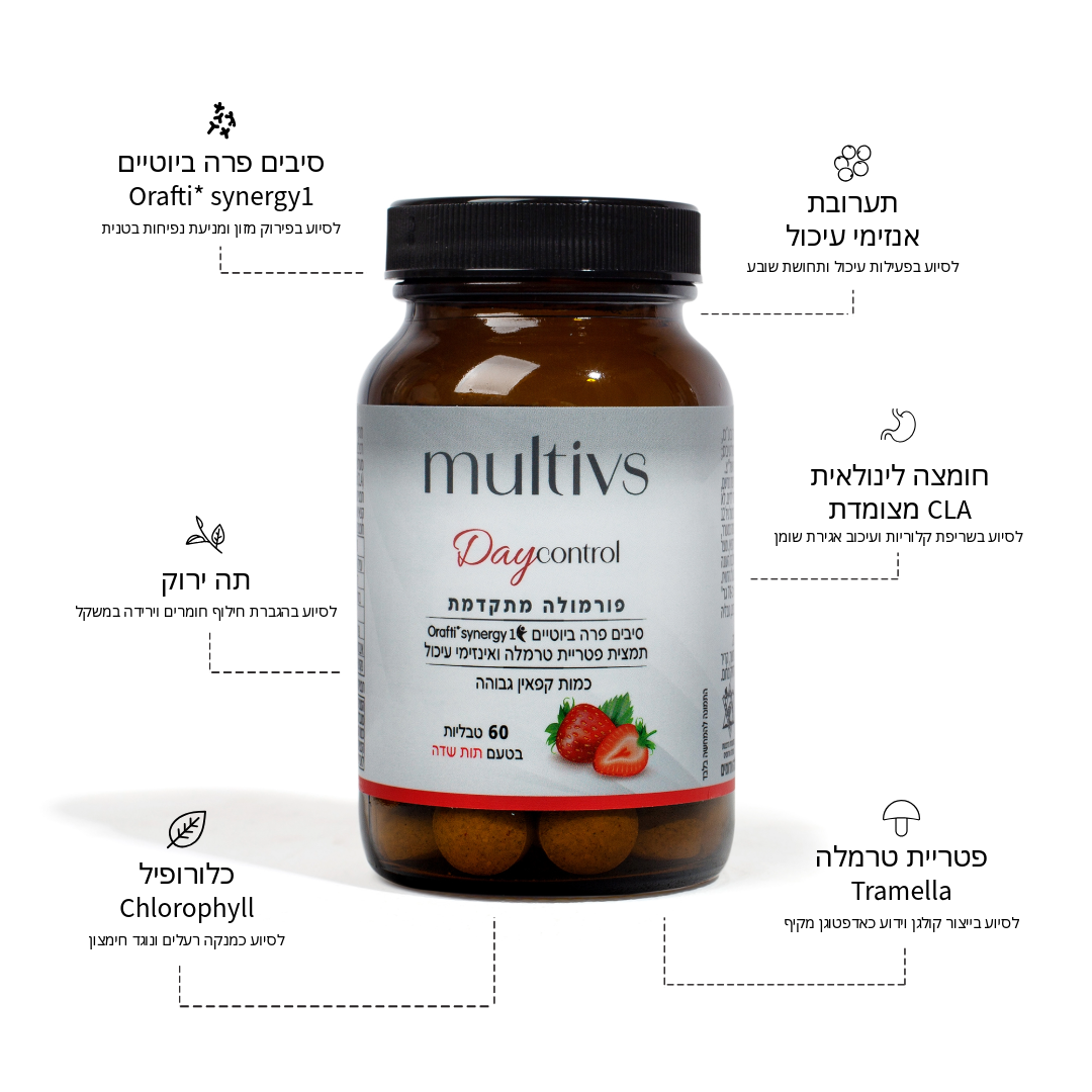 פורמולת תוסף התזונה - דיי קונטרול כוללת את אותם רכיבים מצוינים בכל הטעמים המוצעים למכירה. הוראות השימוש גם הן זהות: עד 3 טבליות ביום בתוספת שתיית מים.